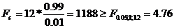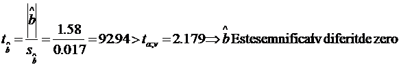 Testul Fisher-Snedecor indica faptul ca rezultatele obtinute sunt semnificative pentru un prag de semnificatie de 5%: Fc=8589.93> F0.05;12=4.76.