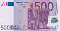 Bancnotele vor fi in numar de 7, si vor avea urmatoarele valori: 5 euro, 10 euro, 20 de euro, 50 de euro, 100 de euro, 200 de euro si 500 de euro.