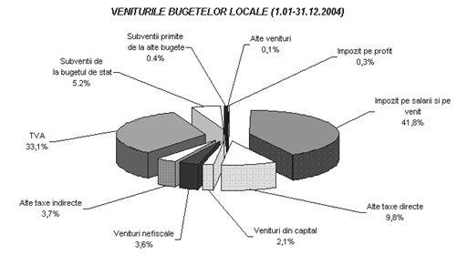 In graficul de mai jos este prezentata structura veniturilor bugetelor locale pe anul 2004.
