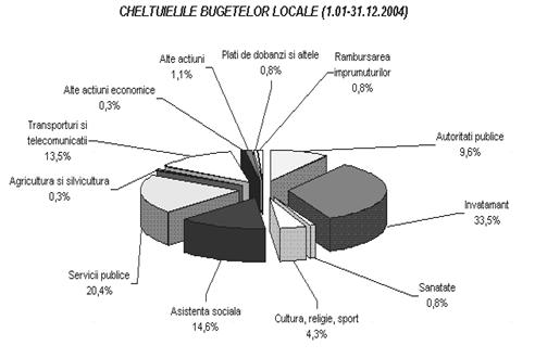 Structura cheltuielilor publice ale bugetelor locale grupate dupa clasificatia functionala, in anul 2004 este prezentata in continuare.