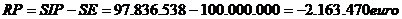 g). Se determina castigul sau pierderea posibila a firmei, in euro, in urma operatiunii, CPE: