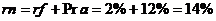 rentabilitatii portofoliului pietei, rp, = 10% 12%. . Sa se