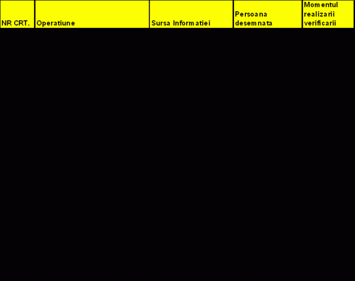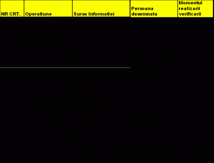 Pentru simplificarea expunerii am sistematizat in tabelul urmator procedura de supervizare prin gruparea operatiunilor supuse acestui proces , sursa informatiilor , persoanele care sunt desemnate si modalitatile de realizare a verificarilor .