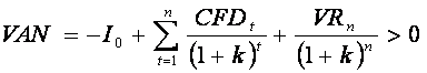Cu alte cuvinte, pentru ca un proiect de investitii sa merite a fi adoptat, VAN trebuie sa fie pozitiva, adica > o