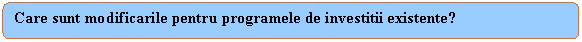 Acest lucru implica modificarea structurii programelor de investitii existente: