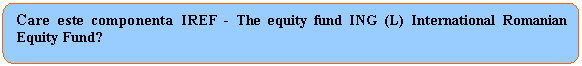 Expunerea pe actiuni va fi realizata cumparand titluri de participare la fondul IREF - The equity fund ING (L) International Romanian Equity Fund