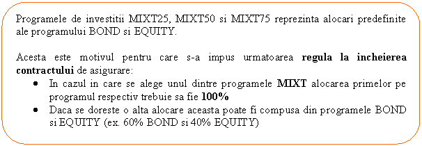 50% actiuni listate la BVB, 50% obligatiuni emise de stat, municipalitati sau corporatii | ||