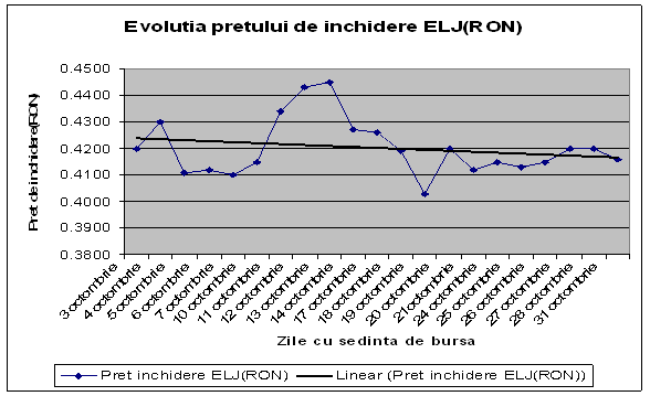 Pe ansamblul perioadei analizate de 10 zile sunt trei zile cu cerere mult mai mare decat oferta, un numar egal de zile in care situatia este opusa iar in alte patru zile cererea si oferta se afla intr-un raport de echilibru relativ. In concluzie putem spune ca pentru perioada analizata raportul dintre cererea si oferta pentru clasa de actiuni ELJ este unul de echilibru.