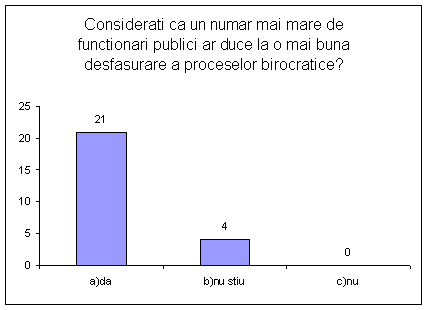 15. Considerati ca un numar mai mare de functionari publici ar duce la o mai buna desfasurare a proceselor birocratice ?