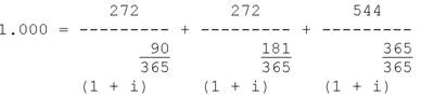 c) intervalele dintre datele utilizate la calcul trebuie sa fie exprimate in ani sau in fractiuni de ani. Un an este presupus a avea 365 de zile sau 365,25 zile ori (pentru anii bisecti) 366 de zile, 52 de saptamani sau 12 luni egale. O luna egala este presupusa a avea 30,41666 zile (adica 365/12);