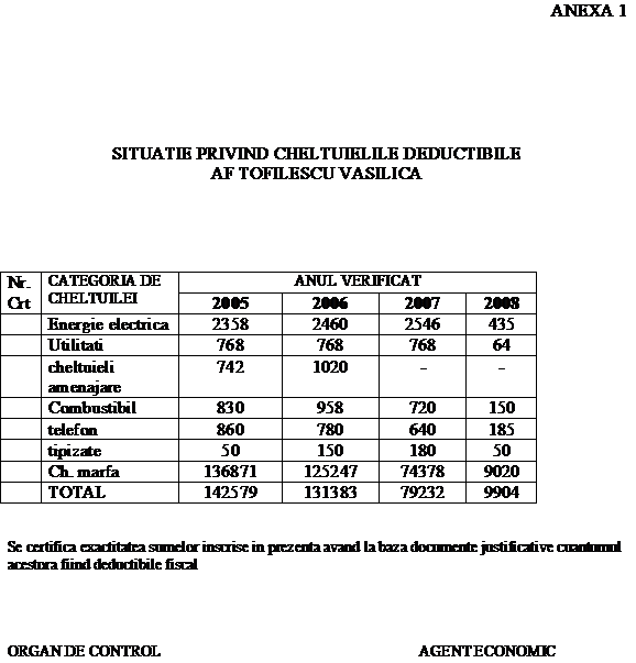 Structura cheltuielilor deductibile efectuate in perioada verificata este prezentata in anexa nr.1.