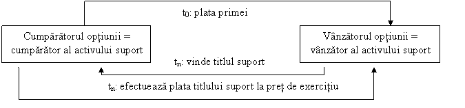 dreptul cumparatorului optiunii call de a cumpara si, respectiv, dreptul cumparatorului optiunii put de a vinde, pana la o anumita data scadenta, cantitatea din activul de baza definit in specificatia contractului cu optiuni, la pretul de exercitare ales, doar dupa ce a parcurs etapele prevazute in procedura de exercitare a optiunii;