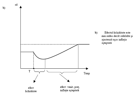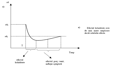 Modul de raspuns, in timp, al ratei dobanzii la sporirea ofertei de moneda poate fi reprezentat grafic, astfel: