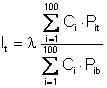 Valoarea indicelui FT-SE 100 la un moment t (It) se calculeaza astfel: