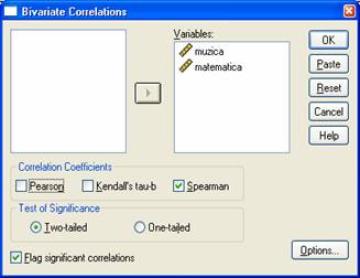 selecteaza "Spearman" si se deselecteaza Pearson (daca nu