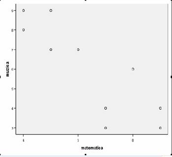 Despre diagrama scatter s-ar putea scrie urmatoarele afirmatii: " A fost examinata o diagrama scatter pentru relatia dintre abilitatile muzicale si matematice. Nu exista nicio dovada privind o relatie curbilinie sau asupra influentei avute de rezultatele atipice".