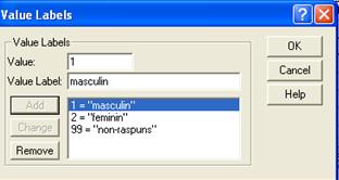 Values. Nu este camp obligatoriu. Aici putem defini valorile (asociate codurilor) pe care vrem sa le vedem in tabelele si graficele rezultate in urma prelucrarii. In figura nr. 2 este prezentat modul in care se definesc valorile codificate.