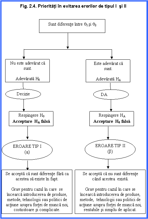 Raspunsul nu este unic ci depinde de obiectivele cercetarii (fig. 4). Daca se testeaza promovarea unor solutii mai scumpe sau mai complicate este de dorit sa nu fie insotite de erori mari de tipul I.