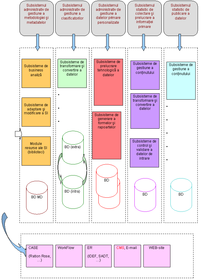 crearea unui mecanism de gestiune a proceselor statistice principale si a subproceselor respective, pentru a permite monitorizarea proceselor tehnologice (evidenta rezultatelor intermediare si finale la procesarea informatiei);
