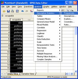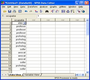 Se introduc datele in "Data Editor" (asa cum a fost prezentat la inceputul capitolului).