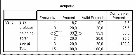 1. Prima coloana a tabelului contine eticheta celor 5 categorii de ocupatii.