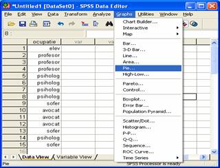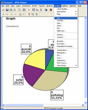 SPSS. Sectoarele din cerc sunt codate cu diferite culori.