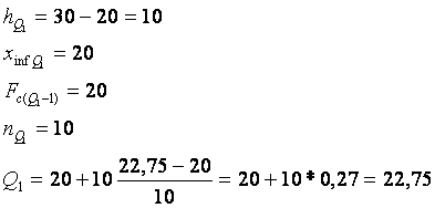 Se calculeaza frecventa absoluta cumulata crescator. Prima frecventa mai mare ca valoare deccat locul cuartilei 1 ne indica intervalul quartilic 1.
