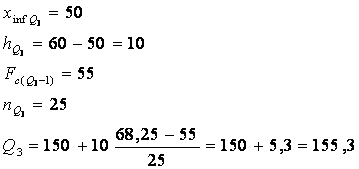 Se calculeaza frecventa absoluta cumulata crescator. Prima frecventa mai mare ca valoarea deccat locul quartilei 3 ne indica intervalul quartilic 3.