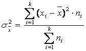 In cazul in care datele au fost sistematizate intr-o serie de distributie de frecvente in care valorile/centrele intervalelor de variatie apar cu frecventele ni, atunci media aritmetica, numita si medie aritmetica ponderata este: