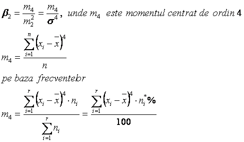 Daca β2 = 3 → simetrie simetrica, iar daca β2 > 3 atunci aveam o distributie leptocurtica deoarece curba era mai ascutita decat cea normala.