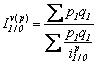 c) Sistemul propus de Edgeworth se bazeaza pe cumularea cantitatilor din perioada de baza cu cele din perioada curenta si folosirea acestora ca pondere la masurarea variatiei relative a preturilor. Pretul fiind o variabila calitativa, relatia generala din care rezulta indicele este: