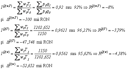 Exemplificare pentru indicii valorii, volumului fizic si al preturilor
