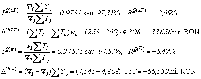 Si in acest caz, modificarea mediei este egala cu suma modificarilor datorate factorilor de influenta, respectiv: