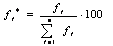 b) Frecventa relativa, notata fi*, se determina raportand frecventa corespunzatoare unei grupe omogene (fi), la numarul total de unitati statistice din care este alcatuita colectivitatea (åfi).