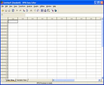 Aceasta este fereastra Data Editor a SPSS-ului si este un spatiu de lucru cu linii si coloane in care pot fi introduse datele.