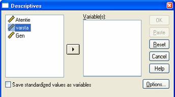 Se selecteaza "Descriptive statistics";