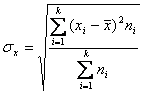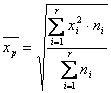 Pentru o serie de distributie de frecvente, media patratica ponderata este: