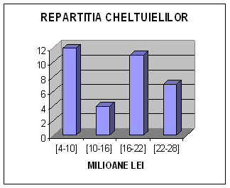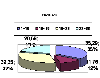 Majoritatea cheltuielilor s-au incadrat intre 4-10 mil. ROL si 16-28 mil. ROL. 47,05% dintre clienti au cheltuieli de cel mult 10-16 mil lei.