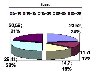 BUGET 5-10 10-15 15-20 20-25 25-30 8 4 5 10 7 23.52% 11.76% 14.70% 29.41% 20.58%