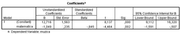 w In acest tabel, B este panta liniei de regresie (in SPSS fiind denumita coeficient de regresie nestandardizat).