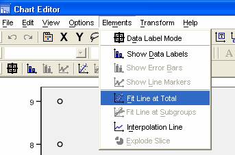o linie de regresie in scatterplot, se da dublu clic oriunde in interior