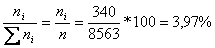2. In urma controlului de calitate, intr-un lot de 500 de piese, se gasesc ni=30 piese rebut.