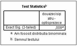 Al doilea tabel indica nivelul de semnificatie al acestui test. Probabilitatea two-tailed este de 0,008 ceea ce este semnificativ la nivelul de 5%.