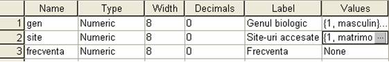 In meniul "Variable View" Se indeparteaza cele Se eticheteaza valorile