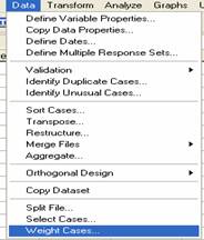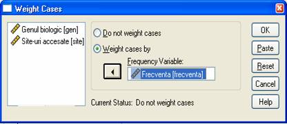 selecteaza "Frecventa", "Weight cases by" si apoi se apasa