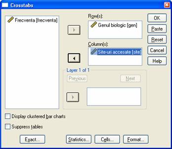 *Testul chi-square analizeaza frecvente. Niciodata acestea nu trebuie sa fie transformate in procente pentru a fi introduse in SPSS, deoarece vor da rezultate eronate atunci cand se vor calcula valoarea si semnificatia chi-square.