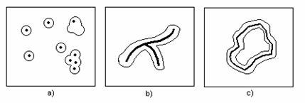 Dintre operatiile elementare care se fac asupra contururilor amintim: selectarea unei portiuni dintr-un strat (CLIP) cu alte cuvinte copierea unei portiuni dintr-un coverage; indepartarea unor primitive grafice (ERASE); crearea unor subdiviziuni (SPLIT), asamblarea a doua sau patru harti adiacente (MAPJOIN), indepartarea limitelor care separa poligoanele de acelasi tip (DISOLVE) si eliminarea unor linii care au fost introduse in mod eronat (ELIMINATE). Analiza de proximitate implica determinarea unor contururi de distanta egala la o anumita primitiva grafica. In mod uzual operatia poarta numele de BUFFER. Exista situatii cand un buffer are dimensiune variabila. De exemplu, intr-un studiu de poluare a solului extinderea gradului de contaminare este dependenta de concentratia poluantului a carei valoare este continuta in tabela de atribut. Operatiile numite mai sus sunt inspirate din instructiunile Arc/Info. Aceste instructiuni, intr-o sintaxa sau alta, sunt aceleasi si in alte produse GIS. Dintre operatii am ales spre exemplificare MAPJOIN (figura 37) si BUFFER (figura 38)