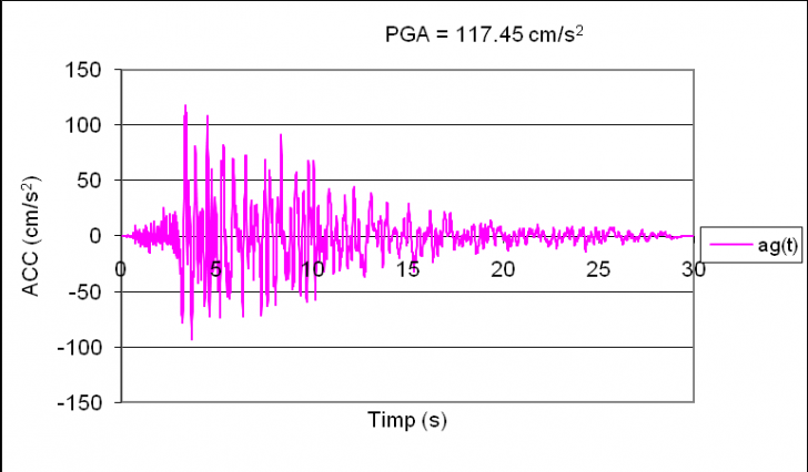 Fig. 1 - Accelerograma, vitezograma si deplasograma miscarii seismice