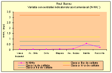 Sectiunea Am. Buzau este amplasata pe raul Buzau dupa confluenta acestuia cu afluentii sai, Balaneasa si Slanic. Pe tronsonul p.h. Magura- amonte municipiu Buzau, apele raului Buzau sufera modificari in privinta parametrilor fizico-chimici, biologici, datorate aportului afluentilor mentionati, in special o mineralizare mai crescuta datorata afluentilor si a surselor de poluare cu nitrati provenite din fostele complexe zootehnice din zona Vernesti. Astfel, valorea mediei aritmetice pentru indicatorul azotati este 3.95 mg/l de 12,65 ori mai mica decat 50 mg/l.
