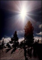 Durata stralucirii soarelui, strans legata de regimul nebulozitatii si al cetii, scade vara de la 1300 ore (la altitudini coborate), pana la 950 ore (pe culmi), in timp ce iarna are valori cuprinse intre 600 si 800 de ore. Intre versantii sudici (insoriti) si cei nordici (umbriti) apare o diferenta medie de 200-250 ore/an la poale si mai putin de 100 ore pe culmi[6].
